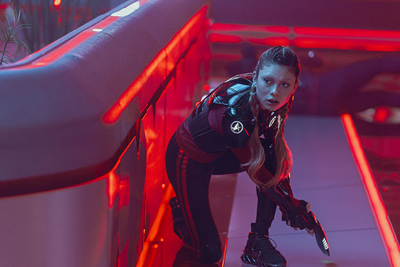 “Empathy for the characters and empathy for the audience. For example, early in the pilot episode, Calib Mir breaks free from custody and fights to take control of the shuttle transporting him to prison. There are a lot of exciting pops out to the exterior to see how the shuttle is bouncing around as the fight takes place inside. This scene was done on the volume stage inside a shuttle. I think we had the shuttle on a gimbal as well to match the movement out the windows.