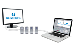 Harrison sees several advantages to incorporating Thunderbolt technology into Promise’s product line. “There are definitely performance [advantages],” he notes. “The fact that Thunderbolt ports are dual channel is pretty impressive as well, because with dual channel, you can run multiple I/O to multiple devices sitting on the same buss.