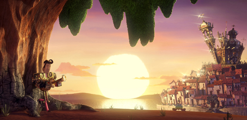 “The trailer shows just a little — when Manolo wakes up and the camera opens up and you see the Land of the Remembered. That had to be the most challenging. The buildings are floating on air. Flower petals are floating in the air. It’s kind of like a metropolis, where there is no ground. That main shot that is in the trailer, that took almost four months to complete! Of course we used that one as development for the rest of the shots that come after. It worked out really well.”