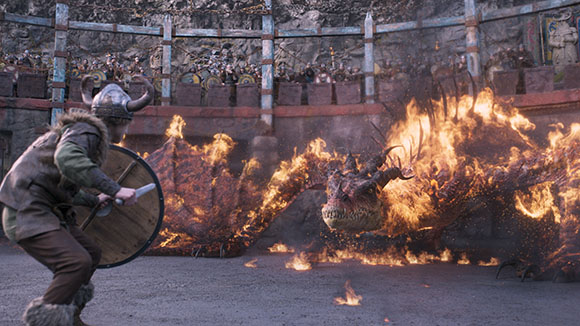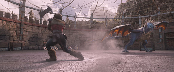 “Framestore’s Melbourne team, led by VFX supes Glenn Melenhorst and Dom Hellier, looked after all of the dragon training arena sequences, plus Gobber’s limb replacement.