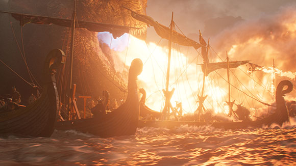 “Framestore’s London team, led by VFX supervisor Andy Kind, handled all of the Toothless acting scenes — such as his first meeting with Hiccup — alongside the iconic flying sequences and Toothless’ battle with the Monstrous Nightmare in the training arena. They were also responsible for the scene where the Viking ships are attacked as they attempt to reach Dragon Island.