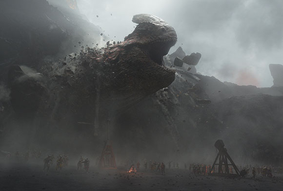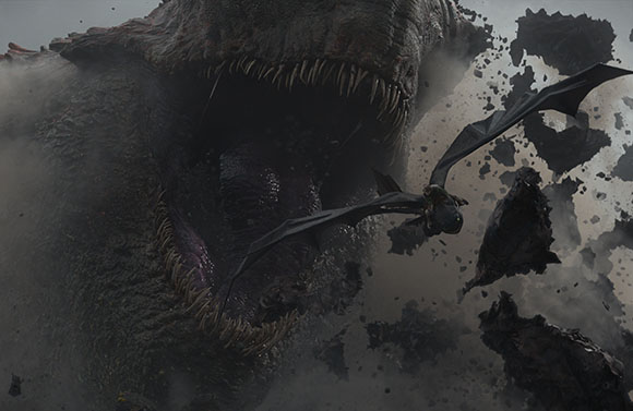 “For flight, a different approach was required. Working with SFX, we created bespoke articulated bucks (that) sat on top of a six-axis gimbal for each of our key dragons. The overall body motion came from the gimbal, while the buck was separated into a head, neck and shoulders, whose movement matched the animated flight cycles created by Framestore.