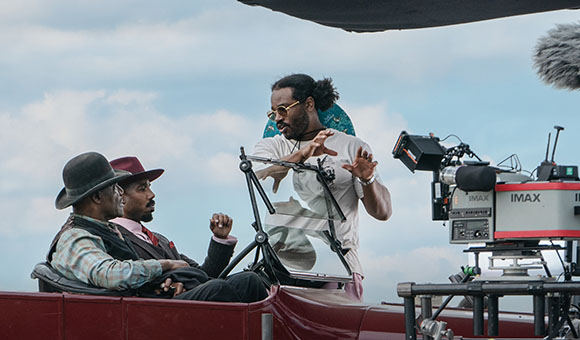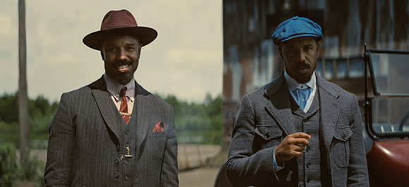 “Then, obviously, the twinning — the VFX work — Sinners would not work without. For moments with lots of physical touch and interactivity, we developed some new technology called the HaloRig, pioneered because none of the technology that we found was good enough to do a full head replacement for Michael [B. Jordan] in 65mm, whenever we shot with the body double. At the same time, we pushed really hard to shoot real Michael as much as possible, including in that cigarette handoff shot that a lot of people seem to be talking about. Some shots are simple split screens, others are highly sophisticated, multi-pass composites shot with a repeatable Technodolly crane, operated by Ron Tatham, involving complicated syncing and preparation with sound and VTR (video tape recorder) departments.